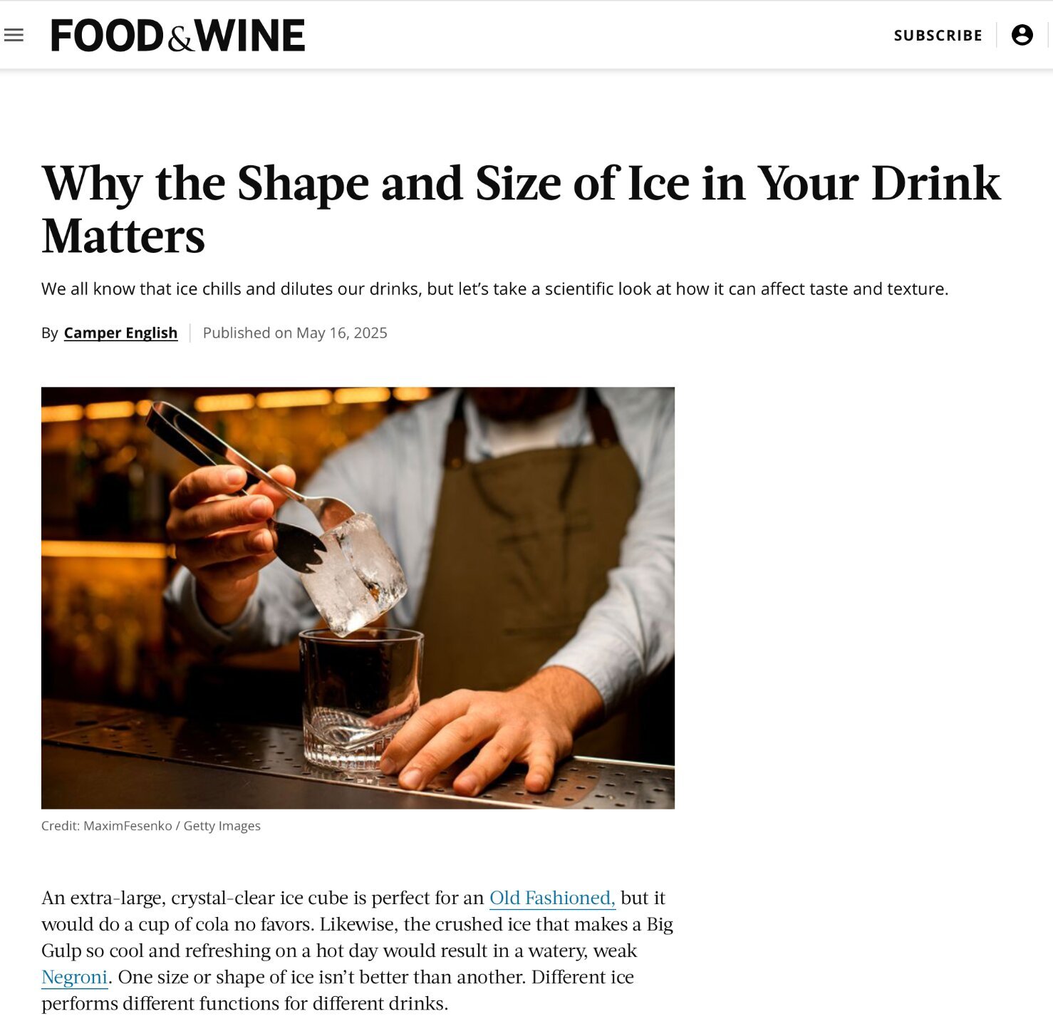 My latest story for Food & Wine is "Why the Shape and Size of Ice in Your Drink Matters."