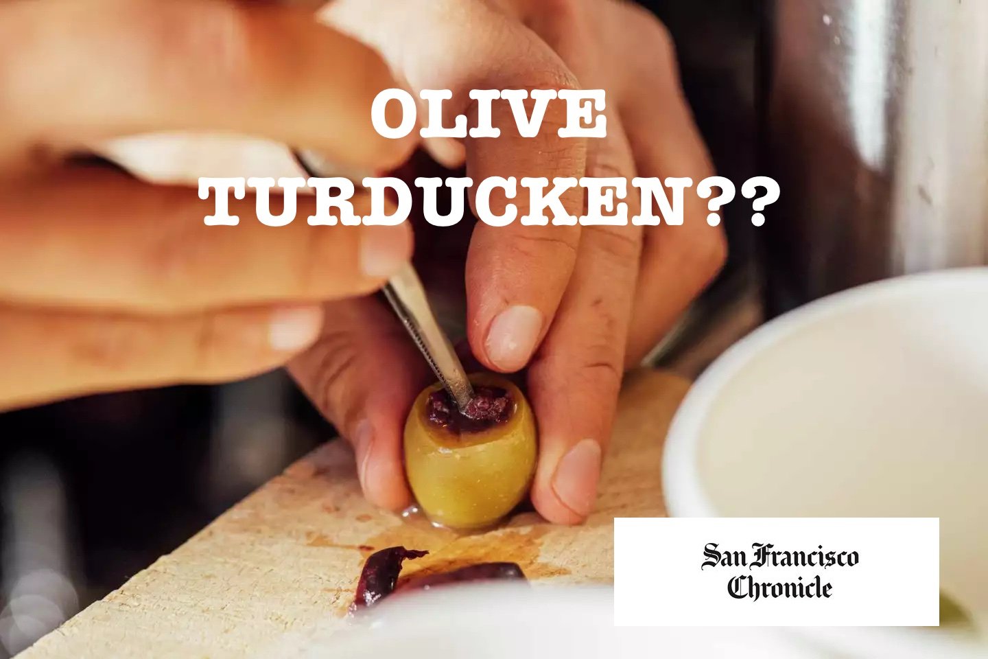 My latest story for the San Francisco Chronicle is about all the ways bartenders are liquifying olives in their Martinis – in the vermouth, gin, vodka, brine, leaf tinctures, oil-washing everything, and even an “olive turducken.”