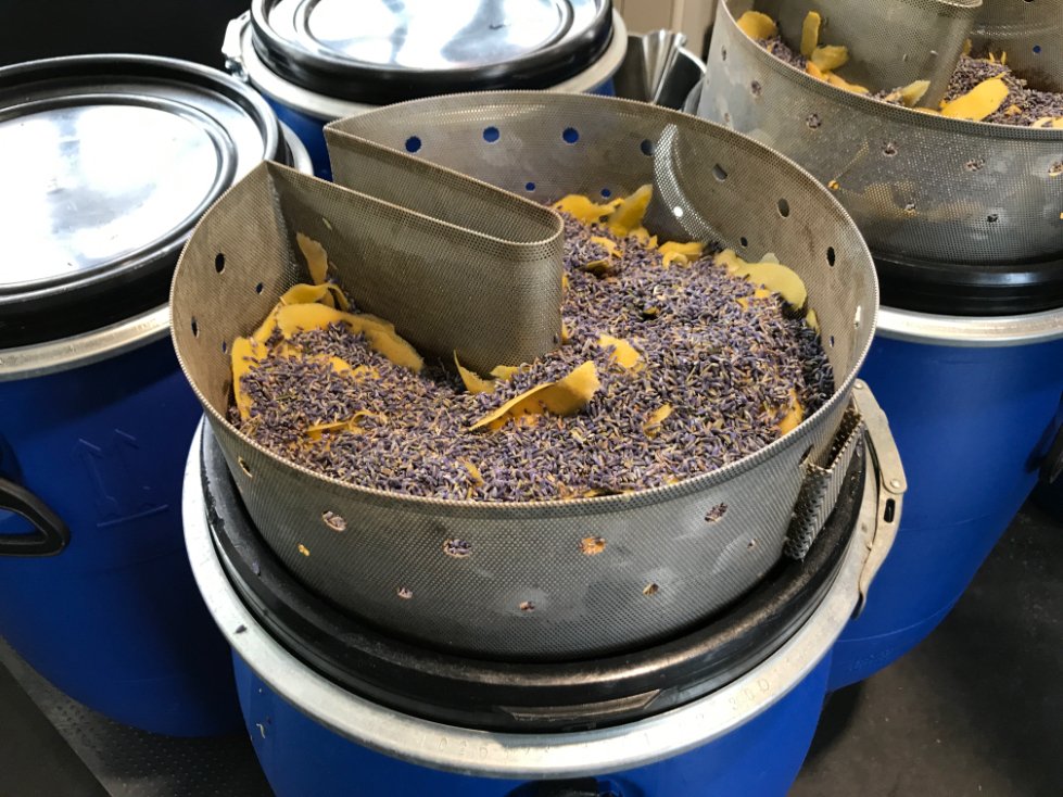 Additional botanicals are put in a botanical basket in the steam section of the still – fresh lavender and lemon peels, not sure if anything else.