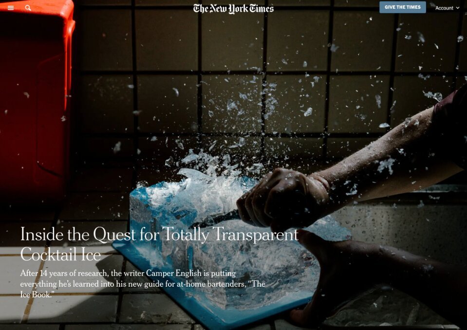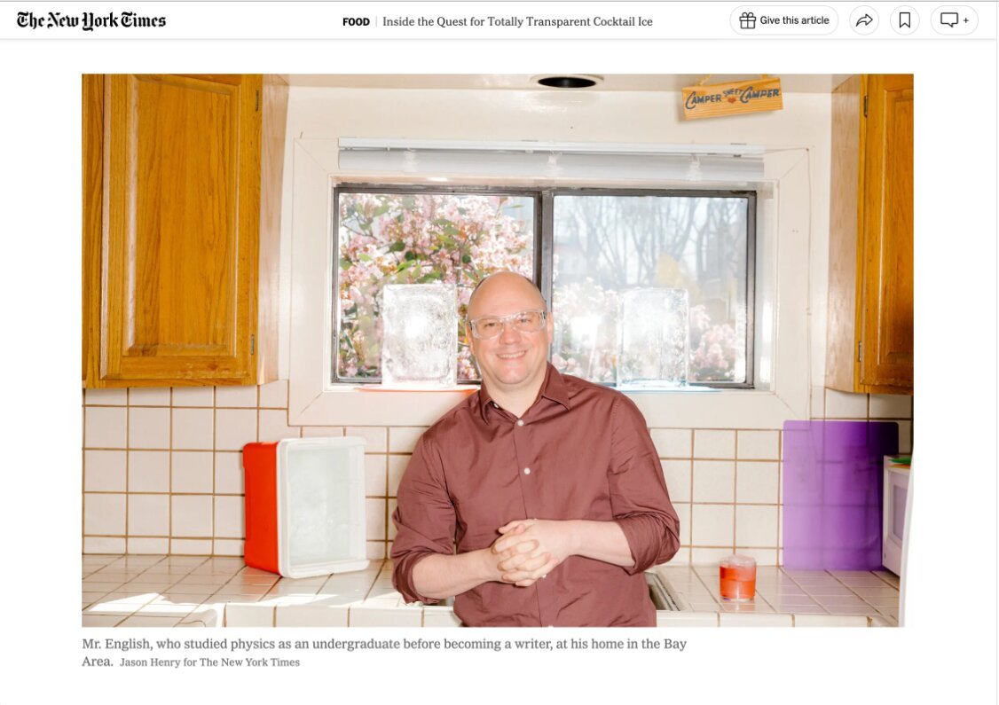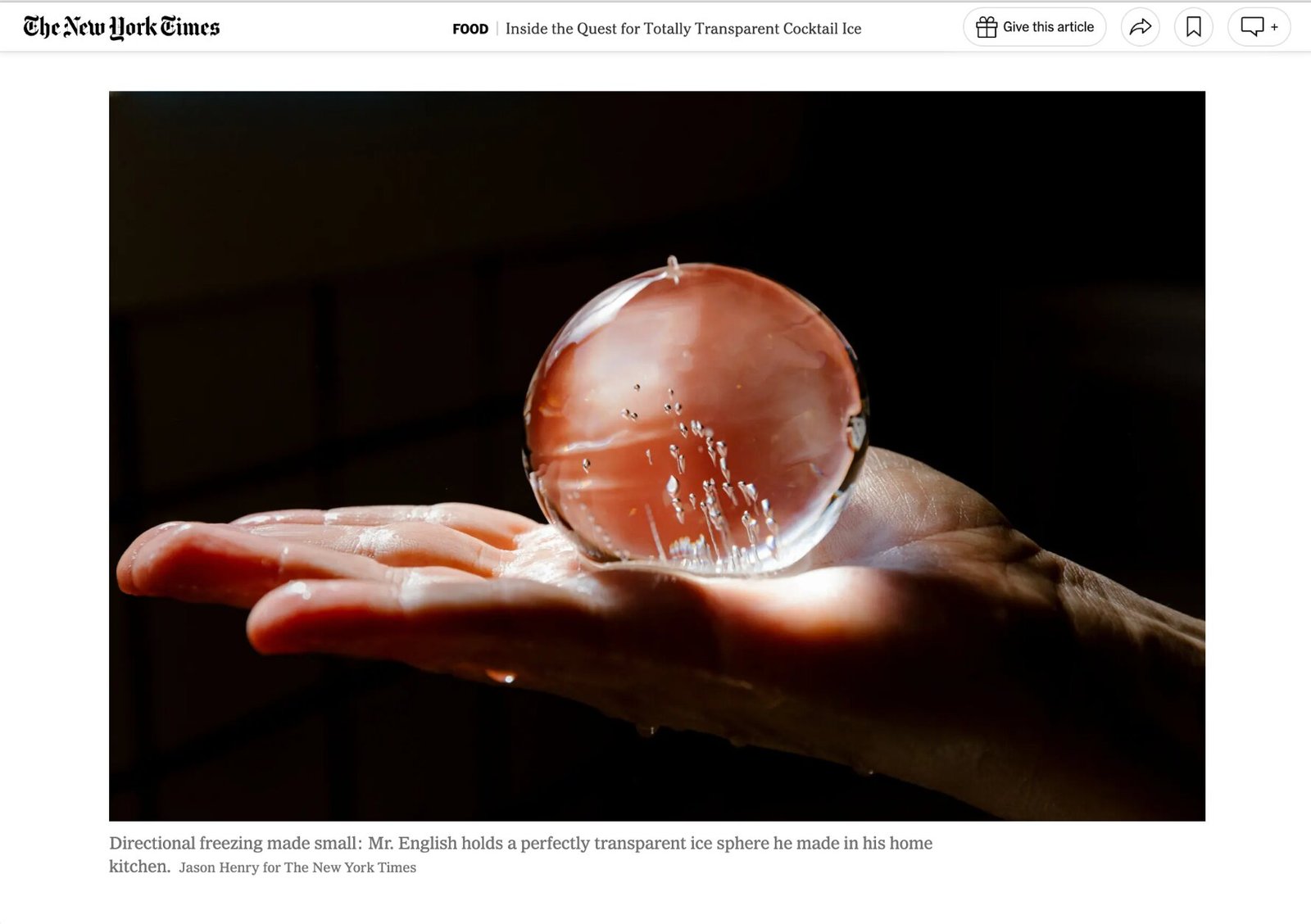 In the New York Times, Robert Simonson writes about my quest for clear ice and The Ice Book! It's a great article.