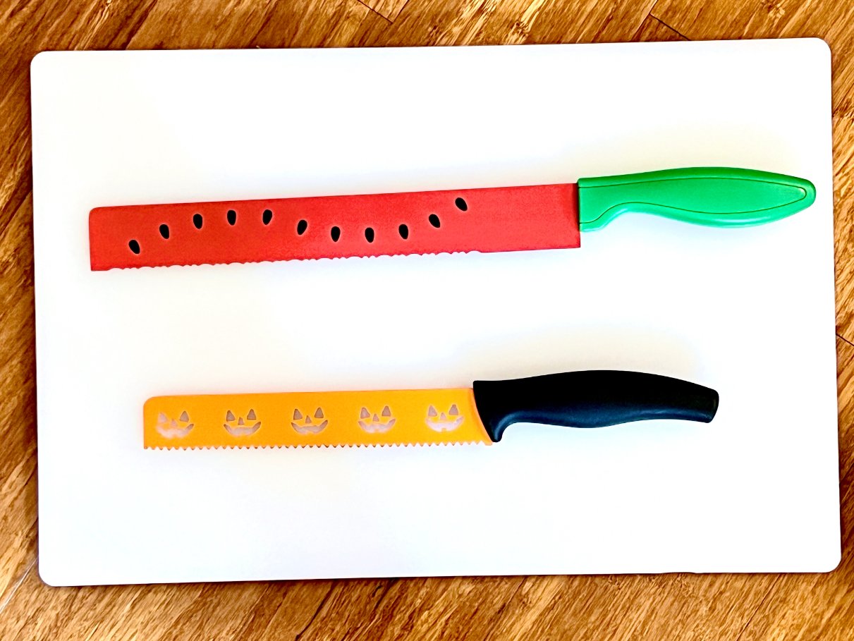 Here's a video comparing the pumpkin and melon knives on YouTube.