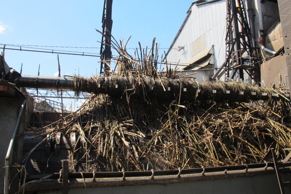 Sugar cane is washed, shredded and juiced in a 5-stage mill.