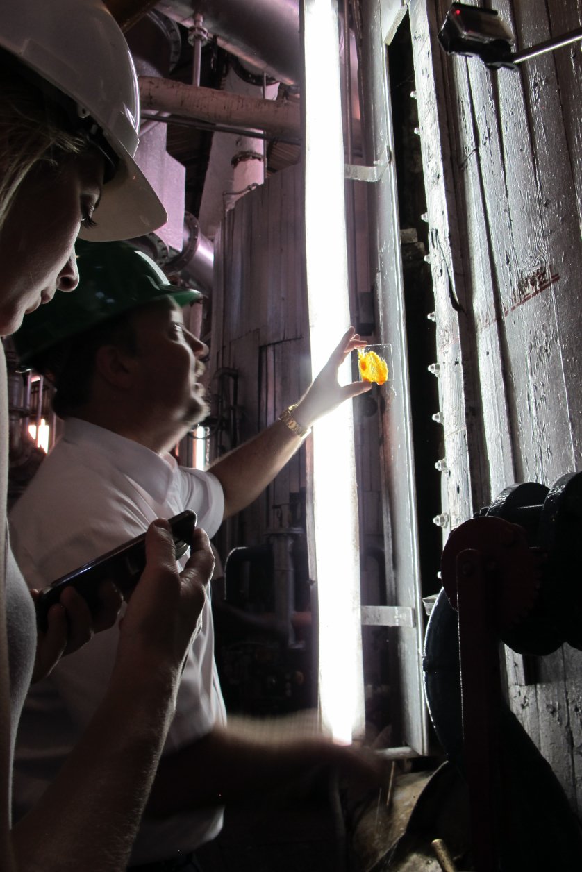Over in the distillery, the molasses is pumped underground from the sugar plant.