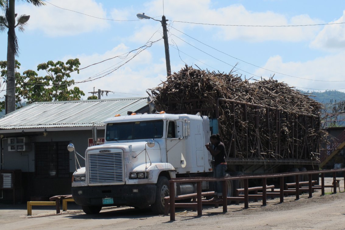 They press the cane (using the green piece of equipment pictured above) in the field, and bring the juice back to the distillery to ferment it. They bring the cane press from field to field when they harvest. Usually they press the cane the same day it is harvested in the field, but always within 24 hours of harvest.