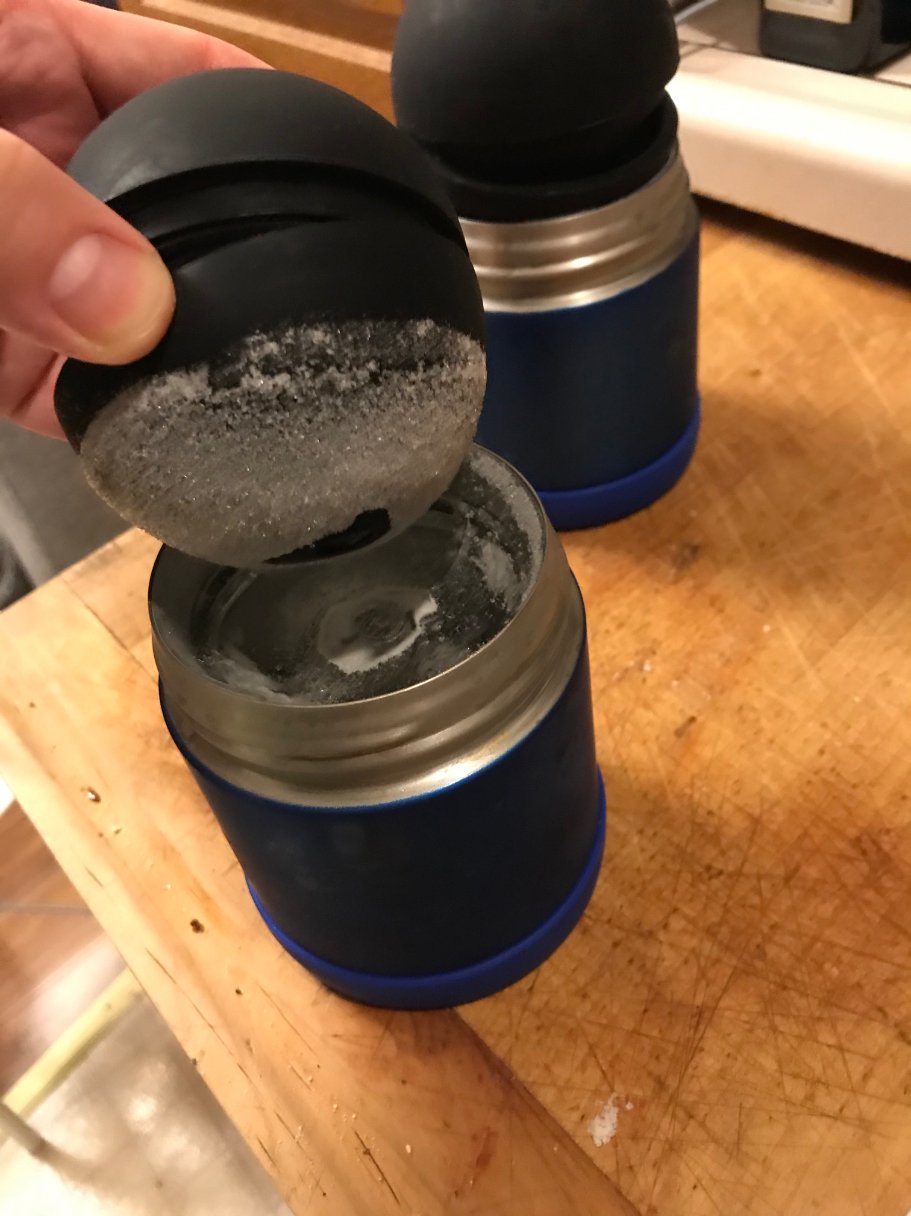 After your last response I also tried the thermos upside down trick and found the exact same thing (didn’t comment earlier as a spoiler because experimenting is all the fun of this) – I did one water in the mold with the upside-down thermos, and another with some water in the upside-down thermos with the idea that the water would provide additional insulation better than air.