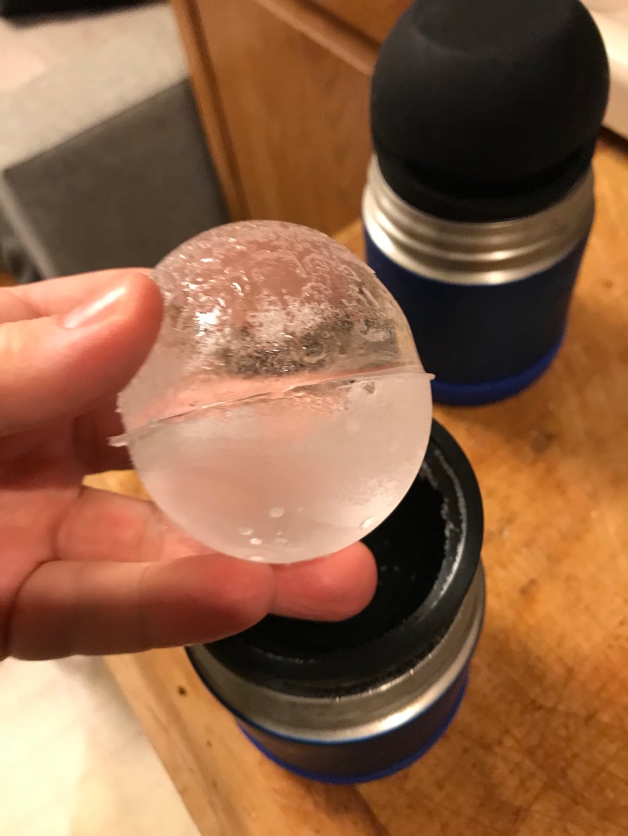 6. The ice ball mold should easily pop off the thermos and be perfectly clear or pretty darn close.