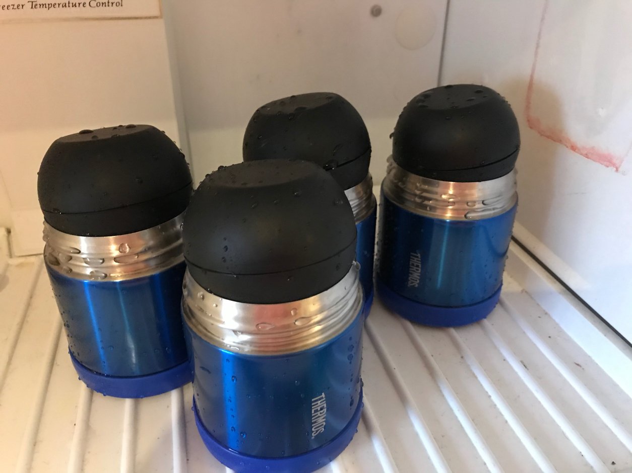 And even if it doesn’t work with air, perhaps we could only use a small portion of water inside the inverted thermos rather than filling it, which should prevent the thermos deforming or cracking when we inevitably forget to take it out of the freezer in time.
