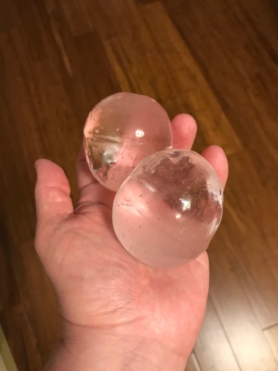 • If your freezer is set on super duper ridiculously cold it may freeze too fast for this to work (it won't push the cloudy part out the bottom but instead into the center of the sphere). You probably don't need your freezer quite that cold!
