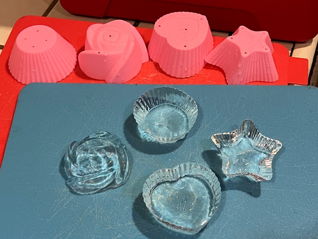 Clear ice in silicone cupcake star heart shapes31