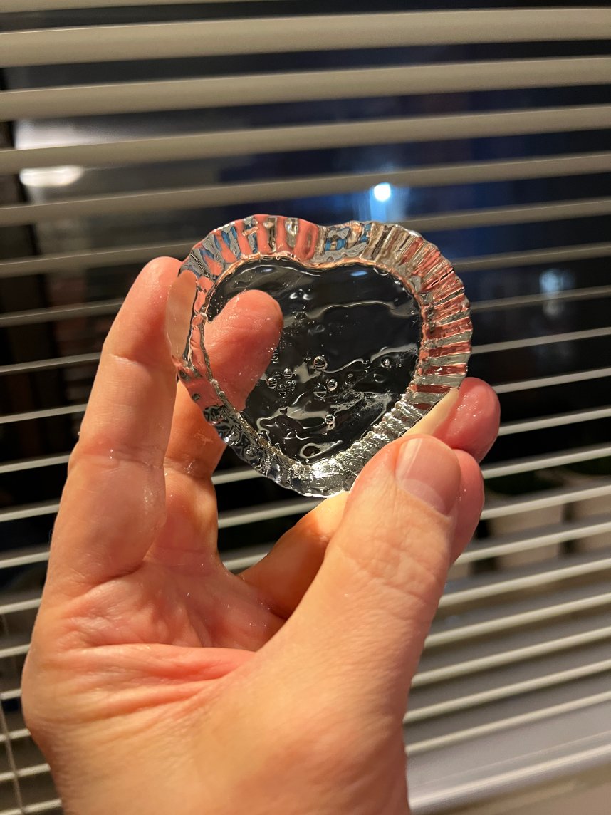However, the amount of thin streams of bubbles in the clear part, which look okay but not perfect when cut into cubes (though a bit more dramatic in pictures), seems significantly reduced in the boiled water block.